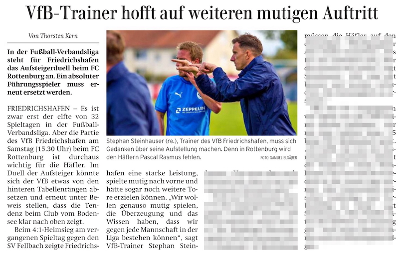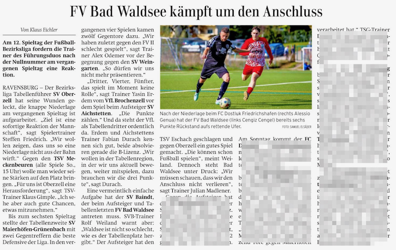 Das ist der Lohn der ganzen Arbeit. Eine Veröffentlichung in einer gedruckten Tageszeitung wie z.B. der Schwäbischen Zeitung, dem Reutlinger General-Anzeiger, dem Herrenberger Gäuboten, dem Zeitungsverlag Waiblingen oder in einem entsprechenden Online Newsportal. Das ist ein Ziel eines jeden Sportfotografen.